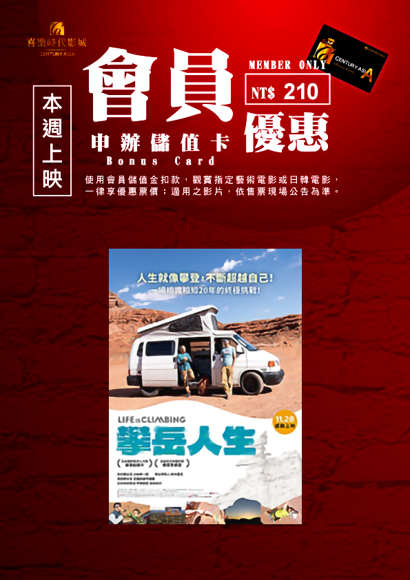 本影城會員卡目前各項優惠權益,僅支援申辦會員卡之原店使用,如造成不便,敬請見諒